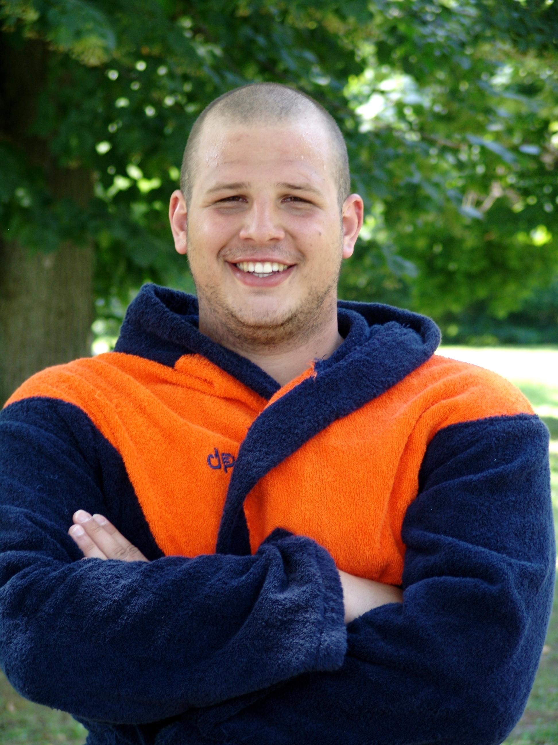 Egyikük a 27 esztendős dr. Szécsi Dávid, aki — főleg édesapja révén — aligha ismeretlen a sportág békéscsabai kedvelői előtt. Szécsi Dávid édesapja, Szécsi Tamás alapítója volt a ’70-es években újra életre kelt csabai vízilabdaéletnek, kiöregedve a játékból hosszú időn át elnöke a klubnak, ma is a Csabai Csirkefogók VK elnökség tagja. Dávid az orvosi pályát választotta, ma is gyakorló orvos, ám miután az OSC számtalan új pólóst, köztük külföldieket igazolt, neki már nem jutott hely a csapatban. Pontosabban, a civil szakmáját nem kívánta feladni, ami ugye együtt jár azzal, hogy nem tudott volna napi két edzésen részt venni, így nem felhagyott a vízilabdával, hanem az alacsonyabb osztályt választotta. Minden bizonnyal a békéscsabai védelem oszlopos tagja lehet a sok száz OB I-es mérkőzésen edződött vízilabdázó, aki nem mellesleg tavaly még tagja volt az Universiade-győztes magyar válogatottnak.